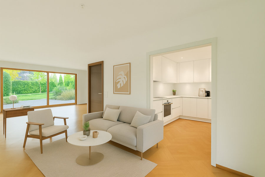 Mit ca. 198 m² Wohnfläche bietet das Haus viel Raum für Familien, Kreative oder alle, die großzügig wohnen und sich verwirklichen möchten. Die großen Fensterfronten sorgen für eine helle, freundliche Atmosphäre und eröffnen einen weiten Blick in den grünen Garten und die umliegende Natur und die Weinberge.