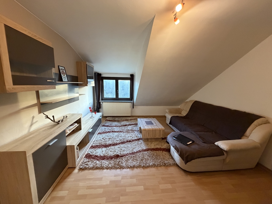 Im Obergeschoss stehen weitere ca. 53 m² Wohnfläche zur Verfügung. Diese Einheit umfasst ein Wohnzimmer, ein Schlafzimmer sowie ein Tageslichtbadezimmer. Ergänzt wird das Raumangebot durch einen unausgebauten Lagerraum, der bei Bedarf zusätzlich zu Wohnzwecken ausgebaut werden kann.